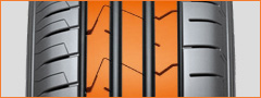 Designed with an innovative groove chamfer, this tyre works to spread the contact patch when braking for enhanced contact with the surface of the road, enabling excellent gripping performance. In addition, the Hankook Ventus Prime 3 (K125) is constructed with a high grip silica compound which delivers superior traction on both wet and dry surfaces.
