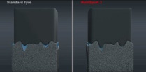 The Uniroyal RainSport 3 has been designed with a unique tyre tread pattern, modelled on the skin of a shark. This tread is made up of special longitudinal grooves which work to channel water away from the tyre with limited turbulence. This results in high levels of resistance to aquaplaning, as the tyre is able to maintain contact with the surface of the road.