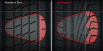 The Uniroyal RainSport 3 offers high levels of grip on both wet and dry surfaces, even whilst cornering. Constructed with Uniroyal’s innovative Fast Curve Configuration (FCC), this tyre is structured with stiff shoulder blocks which resist and transfer forces to retain stability. In addition, its optimally shaped footprint adapts to the surface of the road and this ensures greater contact to enable superior grip.